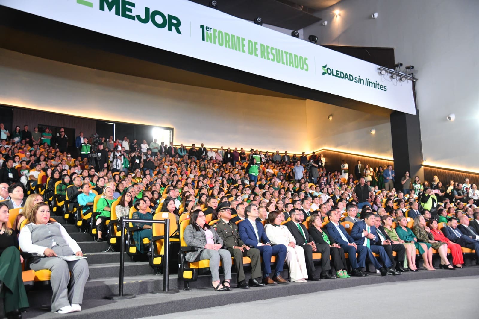 En un ambiente festivo, entre porras, aplausos y gran asistencia en el Teatro y Centro Cultural «Doroteo Arango», el Gobernador del Estado, Ricardo Gallardo Cardona refrendó su respaldo absoluto al Alcalde Juan Manuel Navarro Muñiz, al afirmar: “Nuestro movimiento no podría estar en mejores manos aquí en Soledad”.