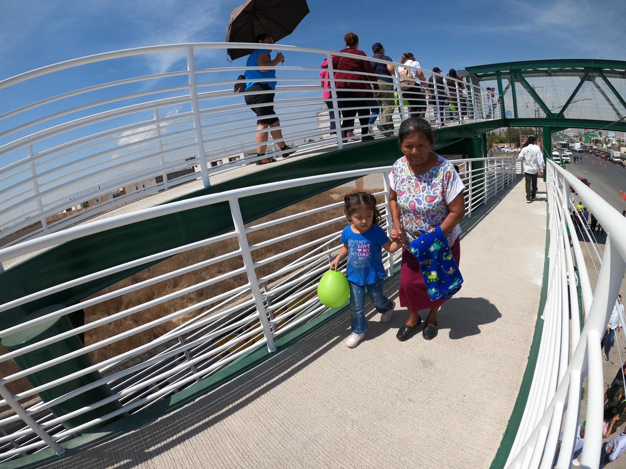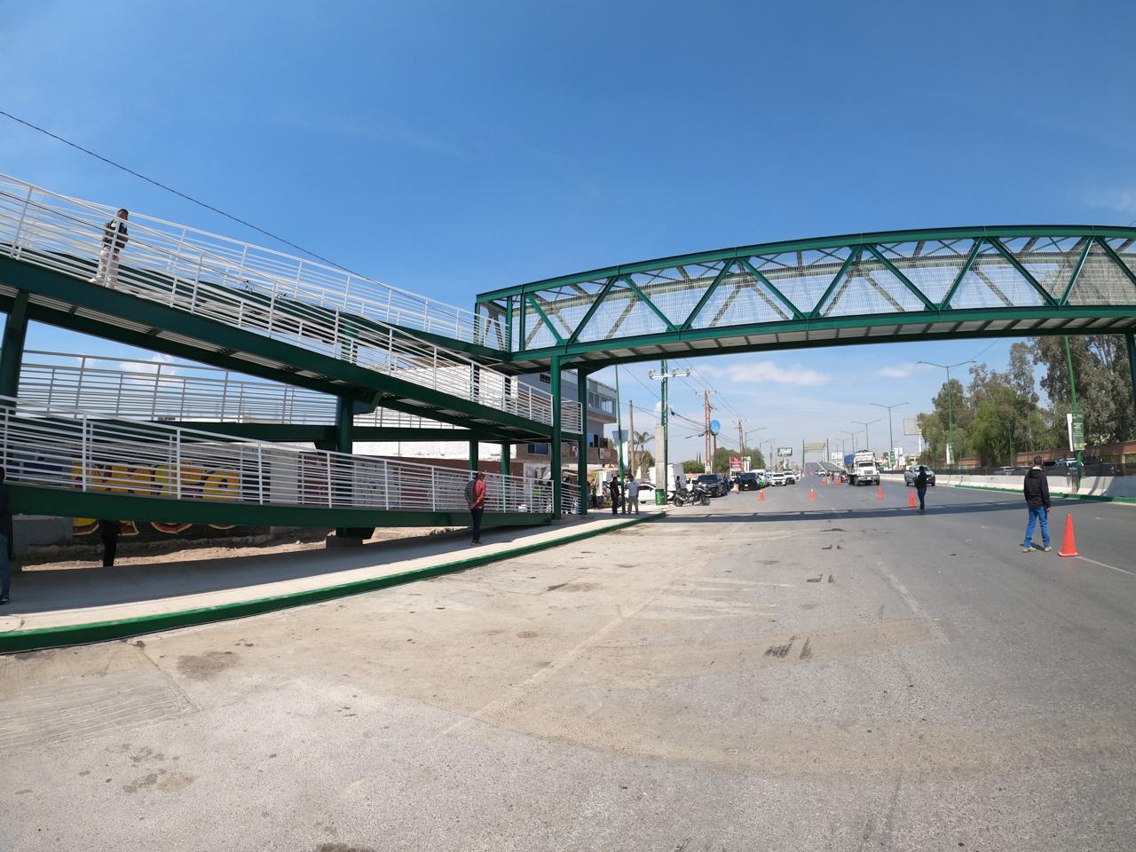 El puente peatonal en el kilómetro 8 del bulevar Valle de los Fantasmas, inaugurado este lunes por el Alcalde, Juan Manuel Navarro y el Gobernador, Ricardo Gallardo Cardona, en el kilómetro 8 del Bulevar Valle de los Fantasmas transforma la movilidad de personas en una de las zonas más transitadas de Soledad de Graciano Sánchez, beneficiando a miles de familias; esta infraestructura ofrece seguridad a las y los peatones, y una mejoría visible a la calidad de vida de las personas que a diario transitan por el área.