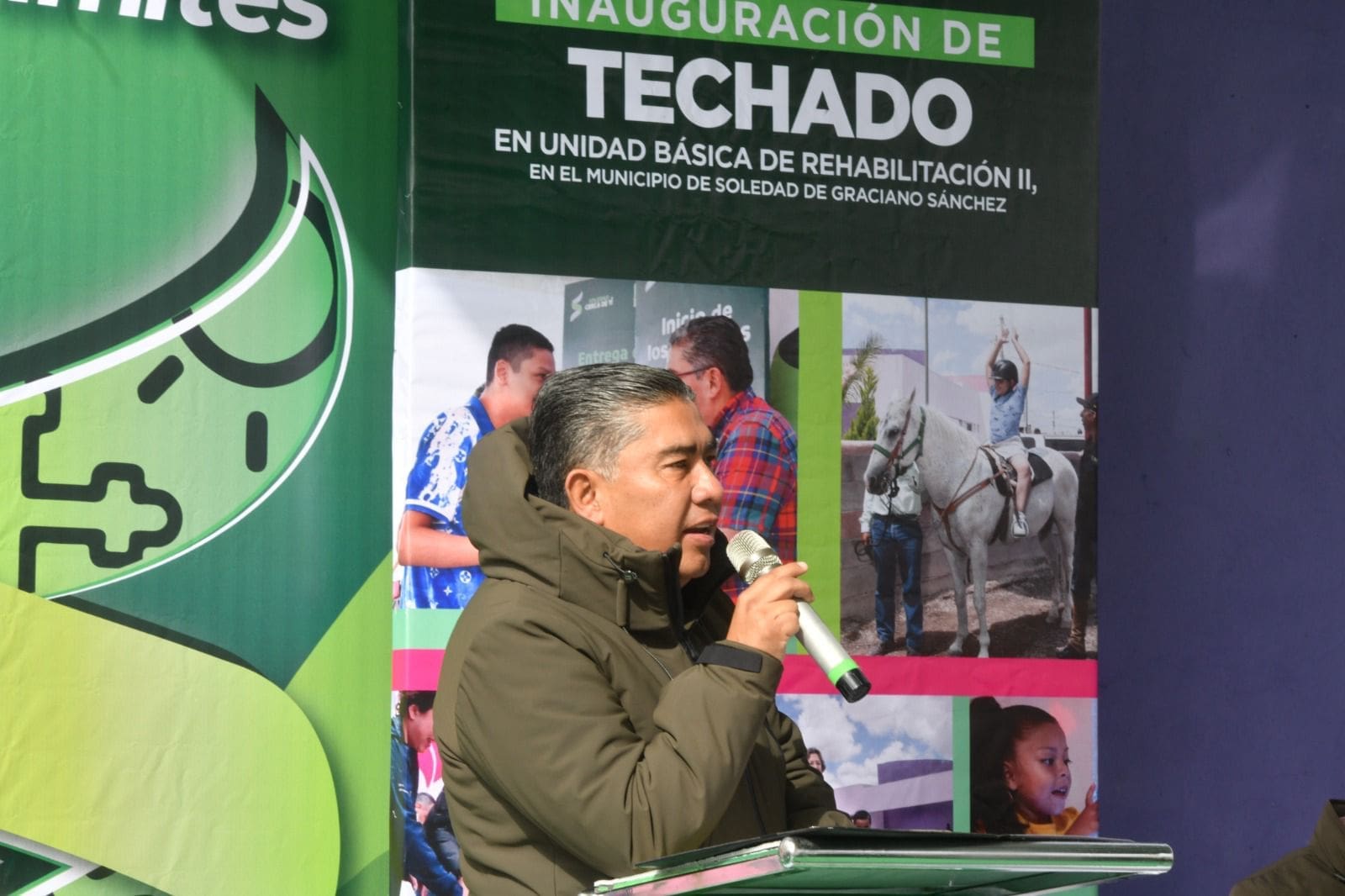 Juan Manuel Navarro Muñiz, Alcalde de Soledad de Graciano Sánchez, inauguró este lunes, junto a la Presidenta del Sistema Municipal para el Desarrollo Integral de la Familia (DIF) María del Pilar Cardona Reyna, la construcción del nuevo techado con cubierta metálica de la Unidad Básica de Rehabilitación (UBR) II, ubicada en el fraccionamiento Villa Jardín, que representa una inversión superior a un millón de pesos; esta obra que beneficiará directamente a usuarias y usuarios de este centro de atención, respondiendo a la encomienda de fortalecer espacios de salud y bienestar, manteniendo al Gobierno Municipal cercano a las familias.