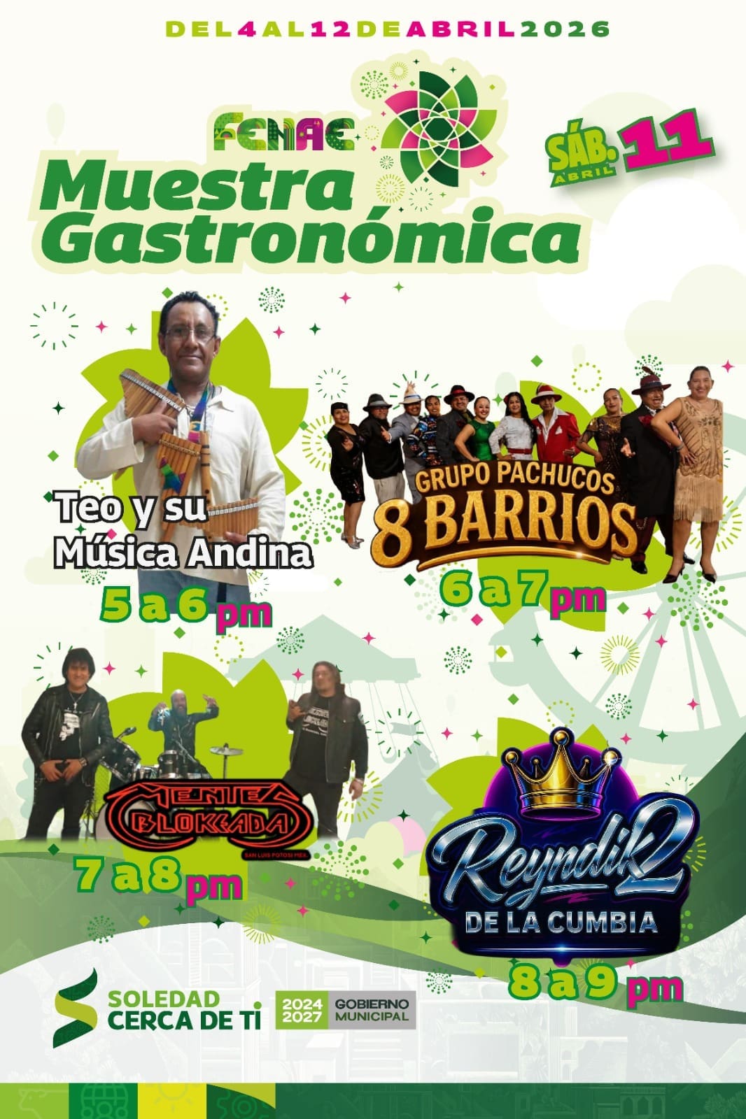 Para el jueves 9 de abril se contará con Al Son del Danzón, Roberto Emir “El Charrito” y Cuadro Norteño; el viernes 10 con Danzón Academia Montoya, Pequeña Itzayana, Fozco y Fascinación Norteña; el sábado 11 con Teo y su música andina, Grupo Pachucos 8 Barrios, Mente Blokeada y Reyndik2 de la cumbia; y el domingo 12 de abril cerrará con Teo y su música andina.