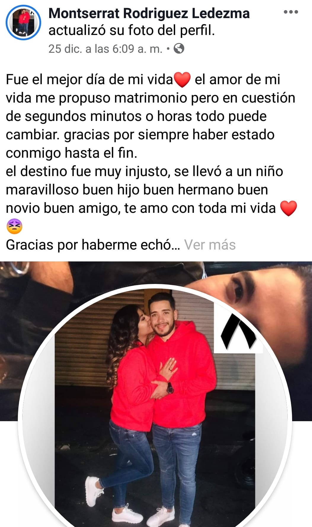 El pasado 24 de diciembre, Jorge le propuso matrimonio a Monserrat y ella compartió el momento tan importante en sus redes sociales. Dos horas después, Jorge perdió la vida al impactar su motocicleta contra otro condutor, en la colonia Aldama Tetlán en Guadalajara. Los dos hombres perdieron la vida de manera instantánea.