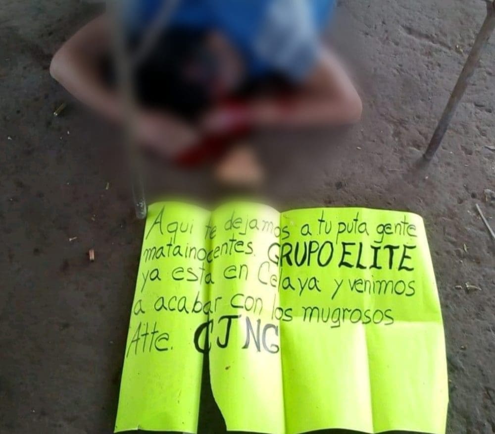 Los agresores dejaron un narcomensaje firmado por el CJNG, en el cual, uno de ellos se leía: «Aquí te dejamos a tu puta gente mata inocentes grupo ELITE ya esta en celaya y venimos a acabar con los mugrosos ATTE CJNG».