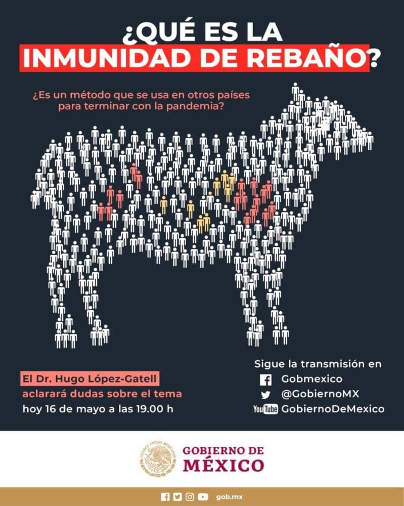 Esta tarde, el Subsecretario de Prevención y Promoción de la Salud, Hugo López-Gatell, dedicará el tiempo de la conferencia de prensa COVID-19 para habar de este tema y desmentir la presunta inmunidad que se consigue al contagiarse en grupo.