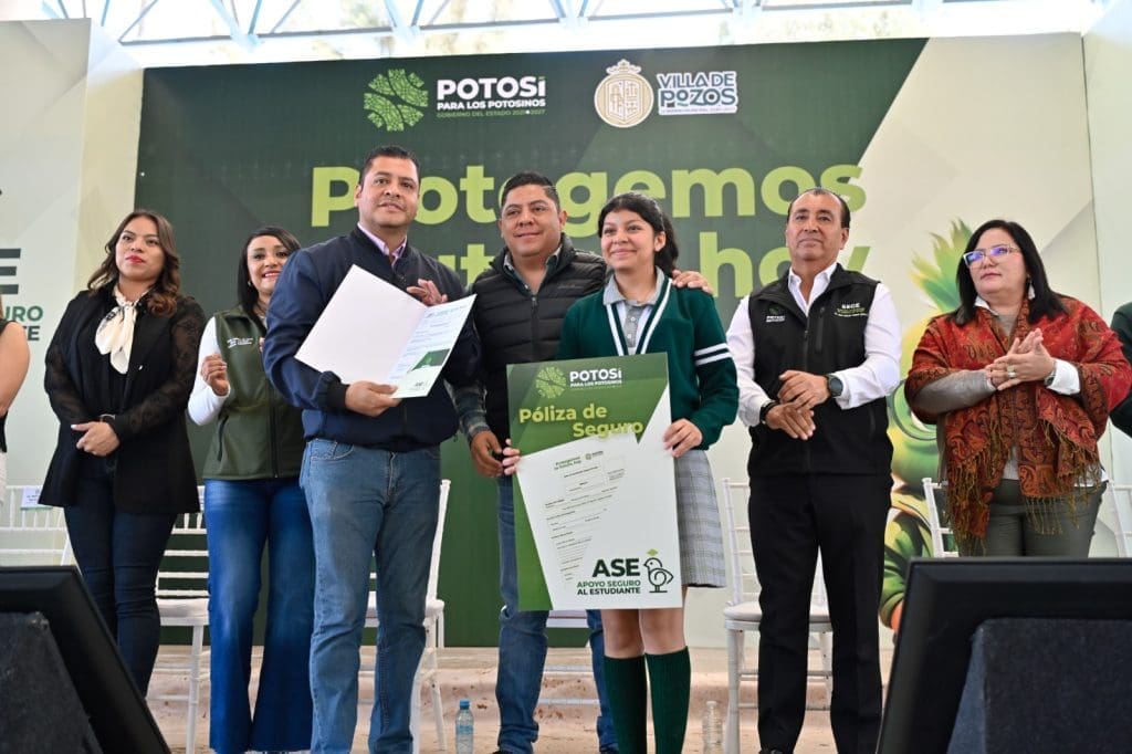 Posteriormente, entre la alegría de alumnas y alumnos de la secundaria “Lázaro Cárdenas”, el Gobernador entregó pólizas de Apoyo Seguro al Estudiante, garantizando que los estudiantes estén protegidos ante cualquier accidente en las escuelas.