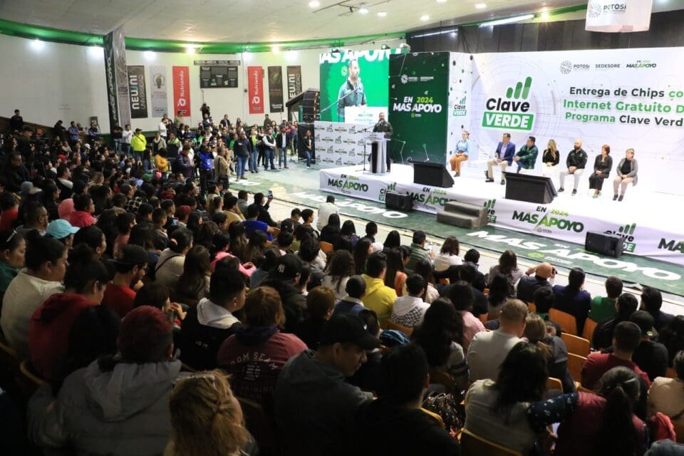 San Luis Potosí es un ejemplo nacional con una estrategia integral de apoyo en educación, al lanzar el programa de internet gratuito “Clave Verde”, que en este año beneficiará a 200 mil potosinas y potosinos y que se suma a la extensa lista de programas educativos implementados por el Gobierno Estatal, como las becas alimentarias, tarjetas de transporte gratuito y la entrega de mochilas, útiles, zapatos y uniformes escolares.