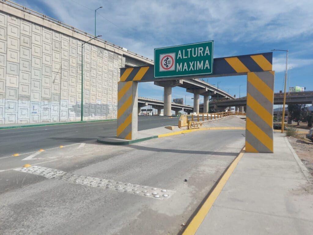 Detalló que las estructuras de concreto y metal que se ubican en las rampas de acceso del bulevar Río Santiago, tienen una altura máxima de 3.20 metros, encontrándose en su cruce con Circuito Potosí Poniente, en la lateral de Carretera a Matehuala y en el ingreso por avenida Sierra Leona, además de que se impulsas acciones de mantenimiento y limpieza diariamente en este bulevar.