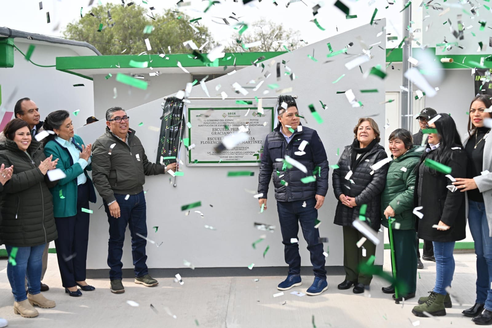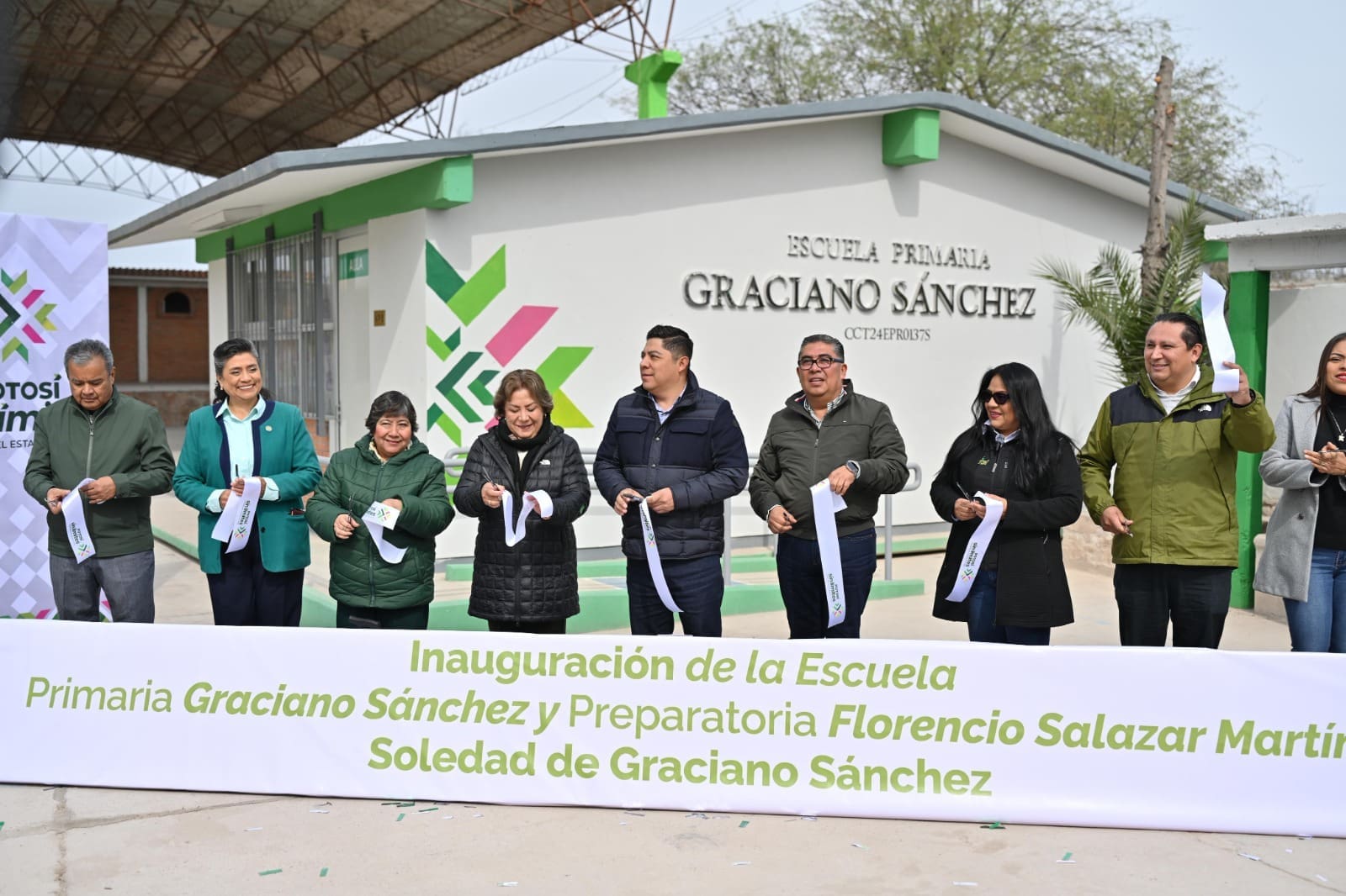 Con la entrega de la primaria “Graciano Sánchez” y la preparatoria “Florencio Salazar Martínez” en Soledad de Graciano Sánchez, el Gobernador reafirma su compromiso de atender el diálogo que se realiza con padres y madres de familia, a quien se les escucha, atiende y cumple en beneficio de sus hijas e hijos. Los nuevos planteles cuentan con seis nuevas aulas, equipadas con mesabancos y pizarrones, así como una red eléctrica segura y una cancha deportiva techada.
