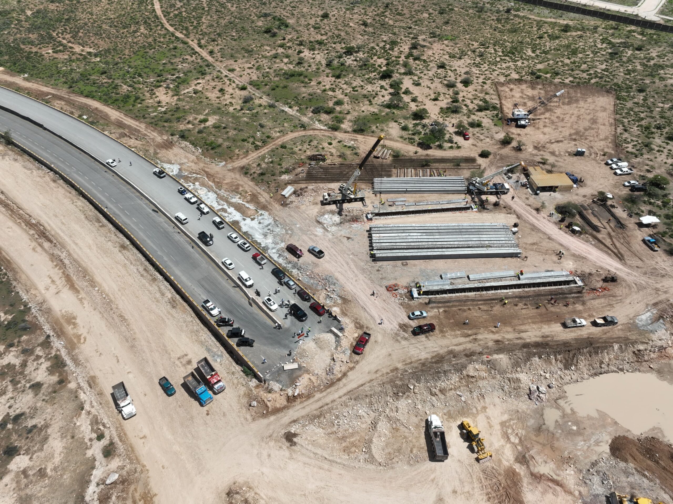 Al realizar un recorrido de supervisión por las obras de la nueva vía alterna que conectará al eje 122 de la zona industrial con el Circuito Potosí, el Gobernador de San Luis Potosí, Ricardo Gallardo Cardona, resaltó que esta importante vialidad, que también tendrá una conexión para prolongación Salk, disminuirá la congestión vehicular de la carretera 57, y brindará más apoyo a las y los trabajadores y habitantes con traslados rápidos y seguros.