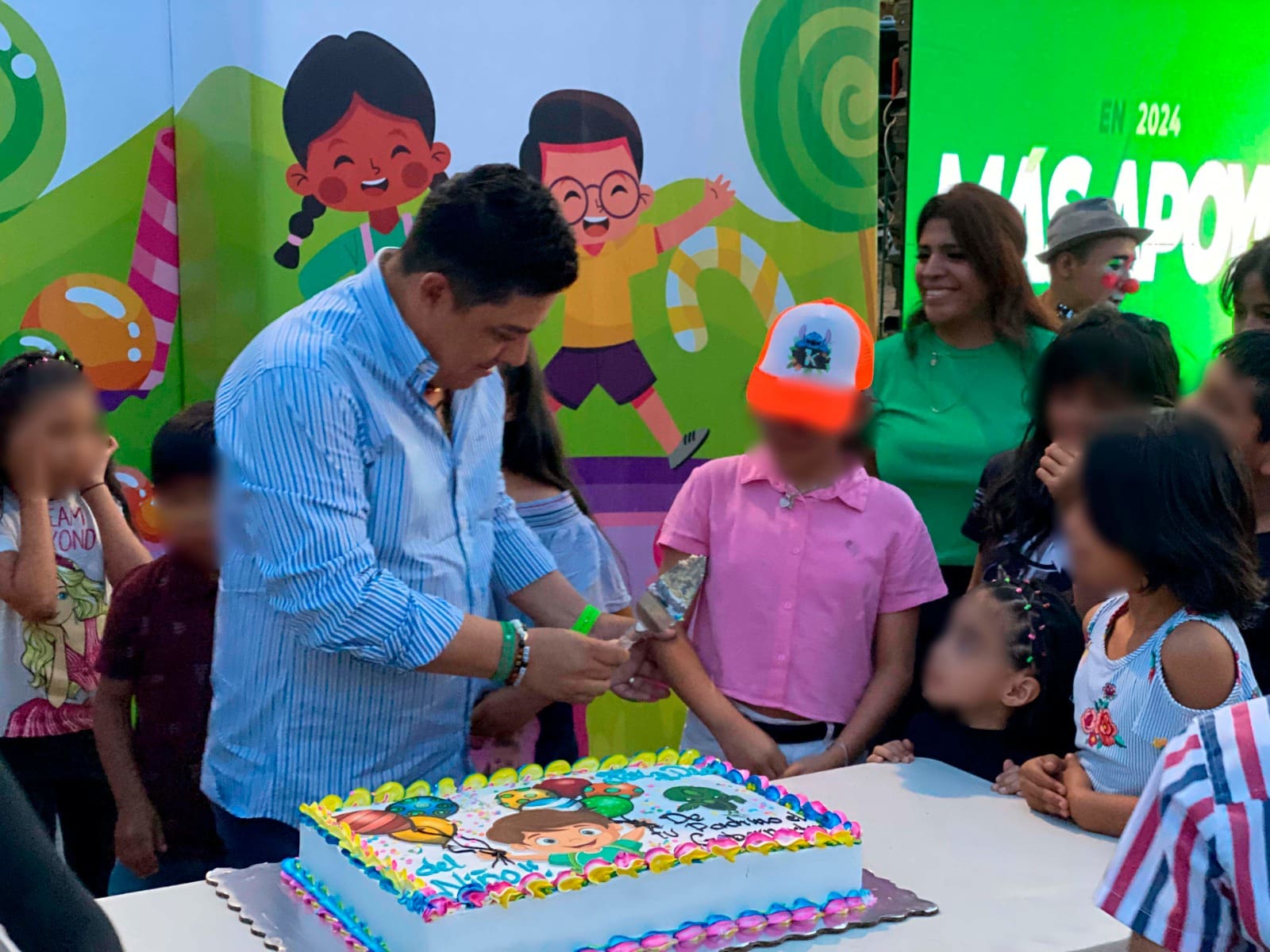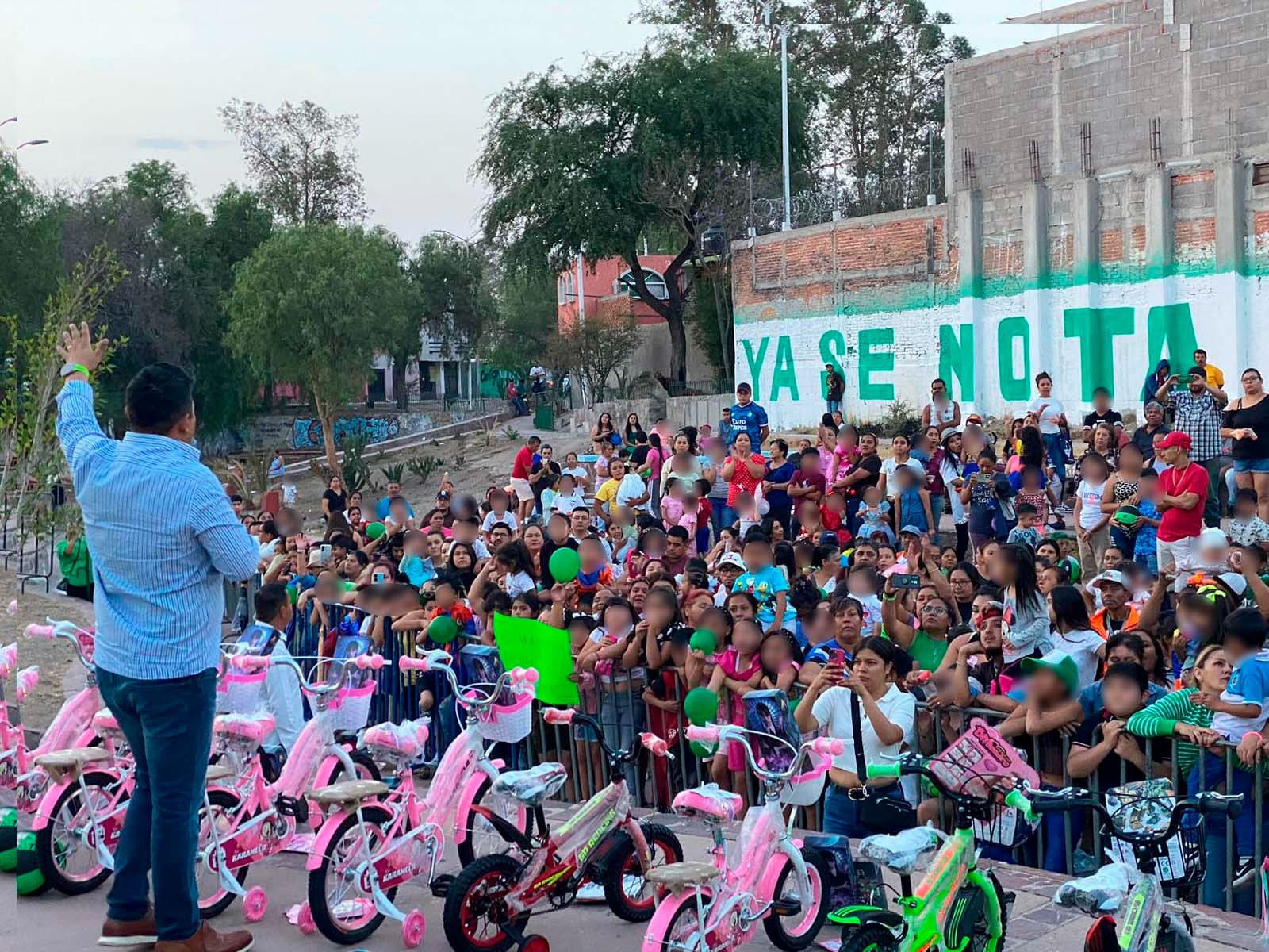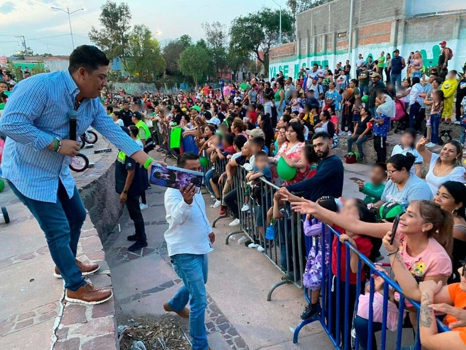 Las y los niños de las colonias General I. Martinez y La Matamoros, recibieron juguetes, balones y bicicletas, partieron pastel y disfrutaron de espectáculos infantiles, dulces y comida que prepararon los colonos.