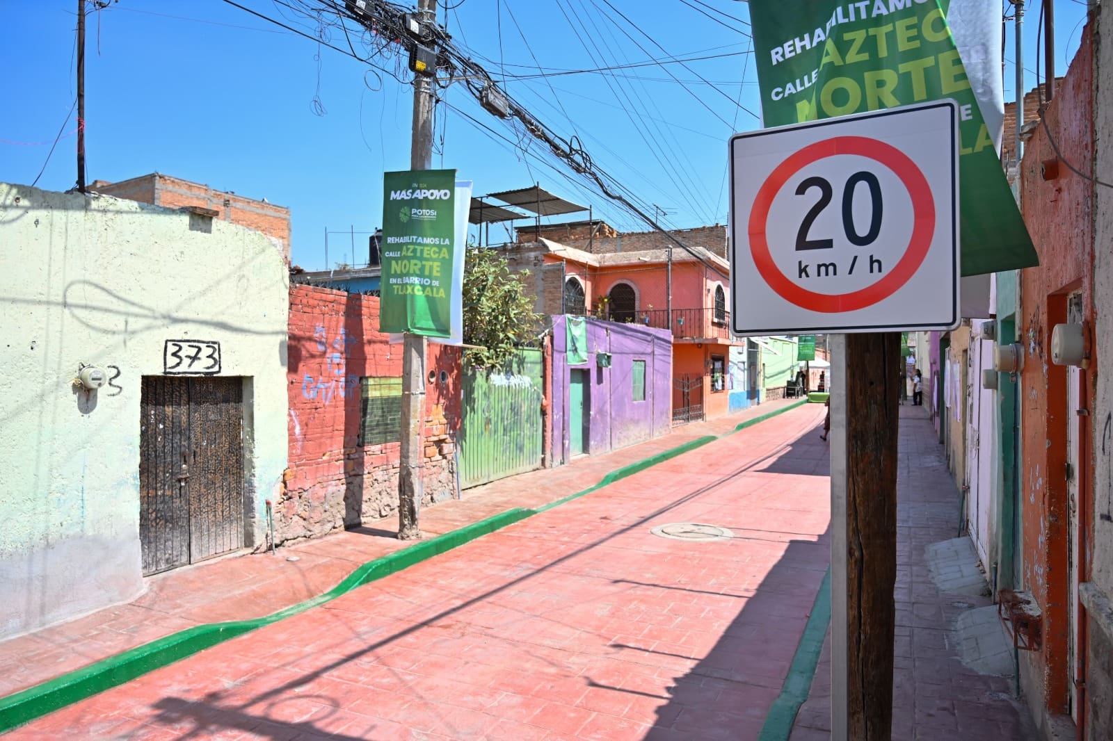 El tramo intervenido de Azteca Norte se encuentra entre las calles Coronel Espinoza y Juan Álvarez e incluyó más de 860 metros cuadrados de pavimentación con concreto estampado de 15 centímetros de espesor, 373 metros cuadrados de concreto para banquetas, instalación de 43 tomas domiciliarias de la red hidráulica y señalamientos, que ahora dan un mejorado ambiente urbano, con mayor seguridad, más bienestar y mayor plusvalía.