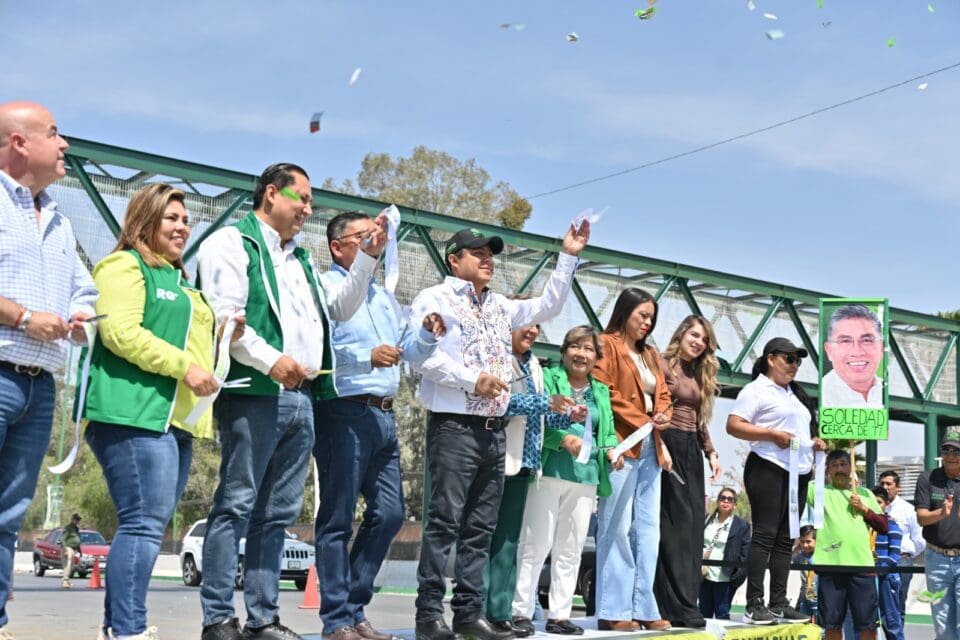 Acompañado por el presidente municipal de Soledad, Juan Manuel Navarro Muñiz, y de cientos de personas agradecidas por la construcción del puente que evitará accidentes, especialmente para escolares, personas mayores y trabajadores, el Mandatario Estatal resaltó que Soledad de Graciano Sánchez continúa con pasos firmes hacia la transformación, con modernidad y cambiando la vida de las y los habitantes.