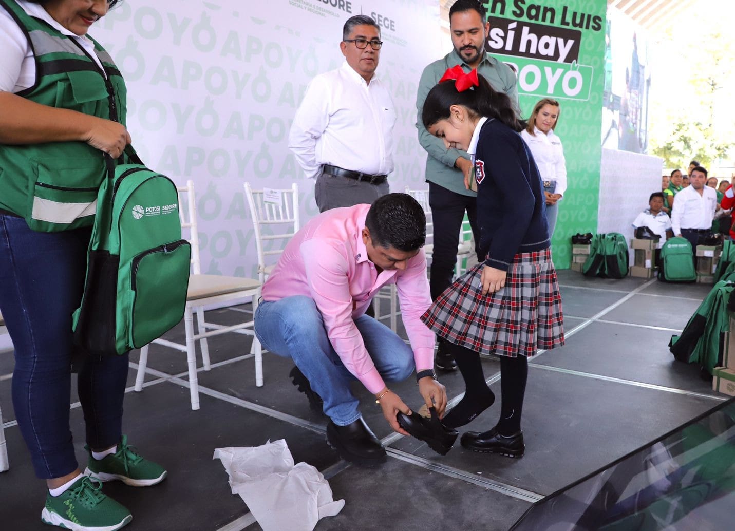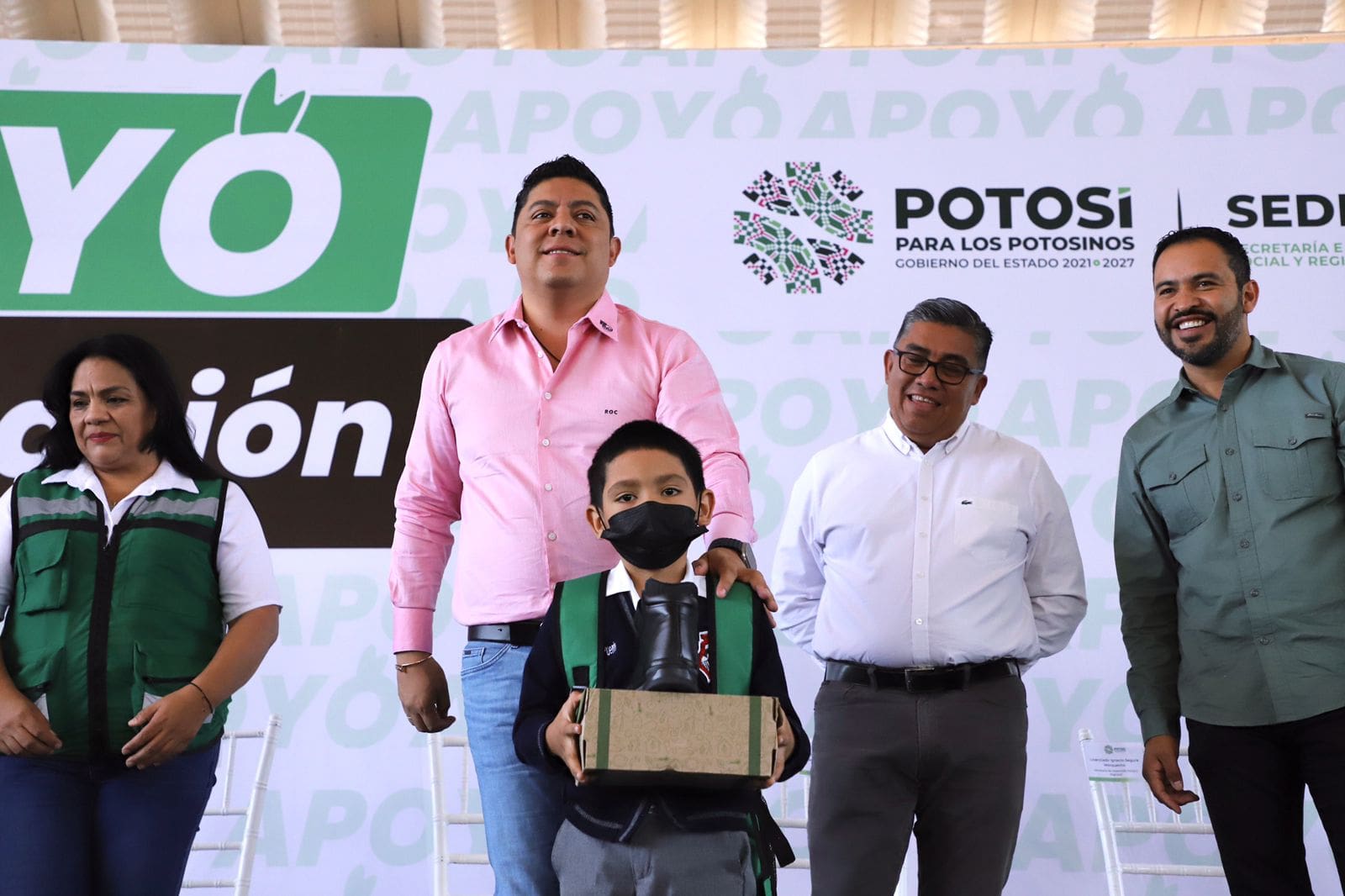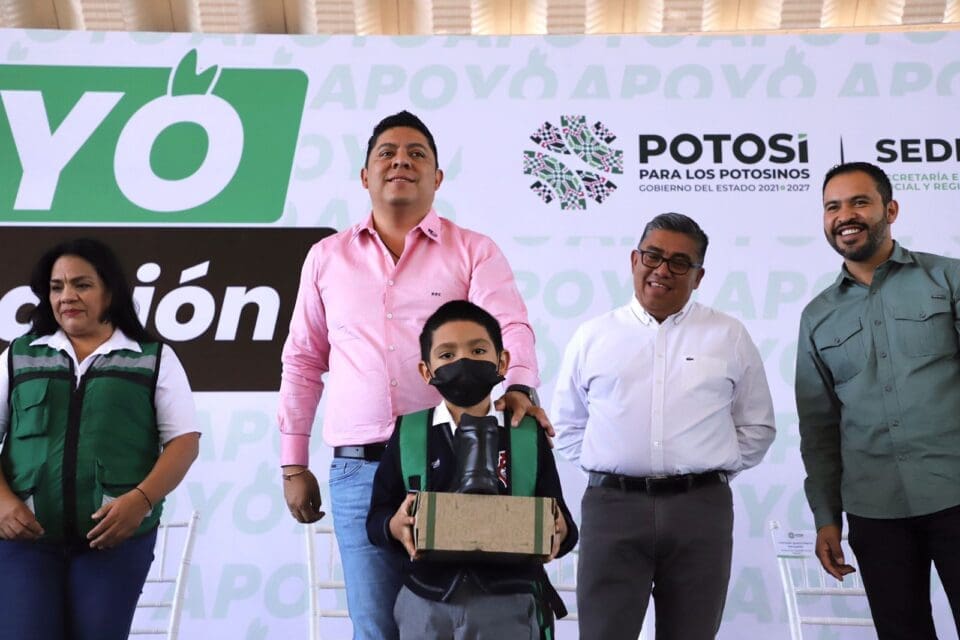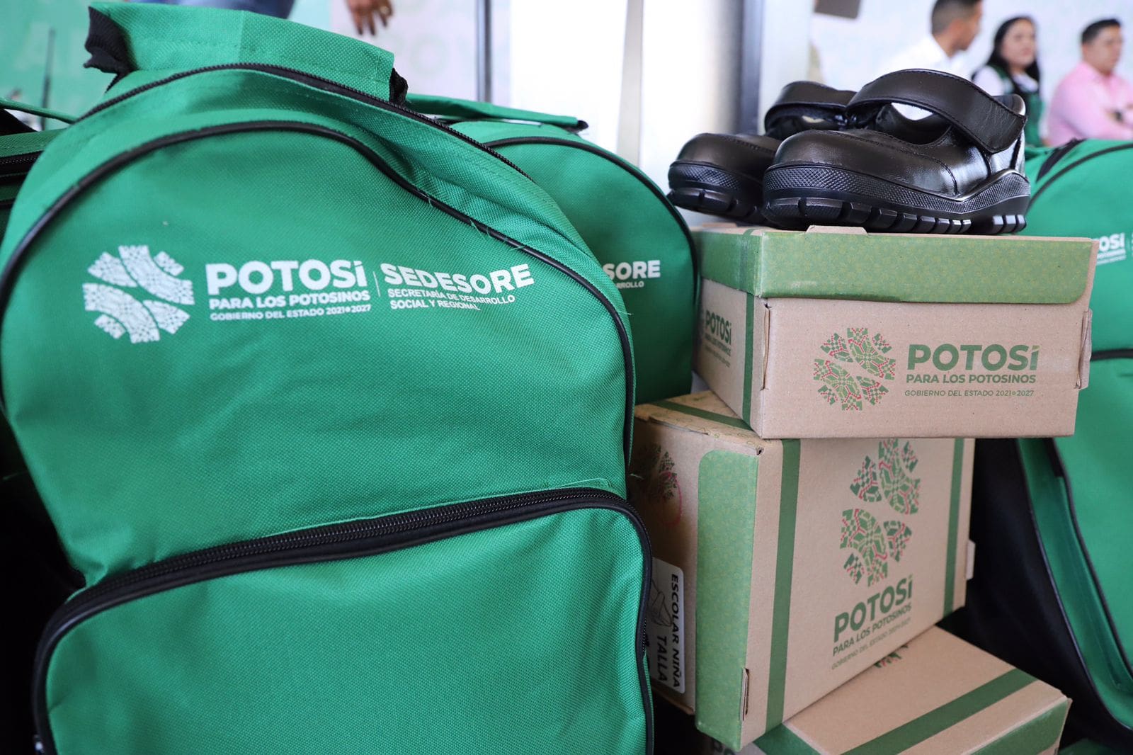 Este programa llegará a las comunidades más alejadas de las cuatro regiones y este año se proyecta entregar 300 mil mochilas con útiles escolares como libretas, diccionarios, juegos de geometría, lápices, calculadoras y entre otros, además de 150 mil pares zapatos, apoyos que son una oportunidad para desafiar la pobreza y contar con generaciones mejor preparadas acorde al crecimiento y desarrollo que vive San Luis Potosí.