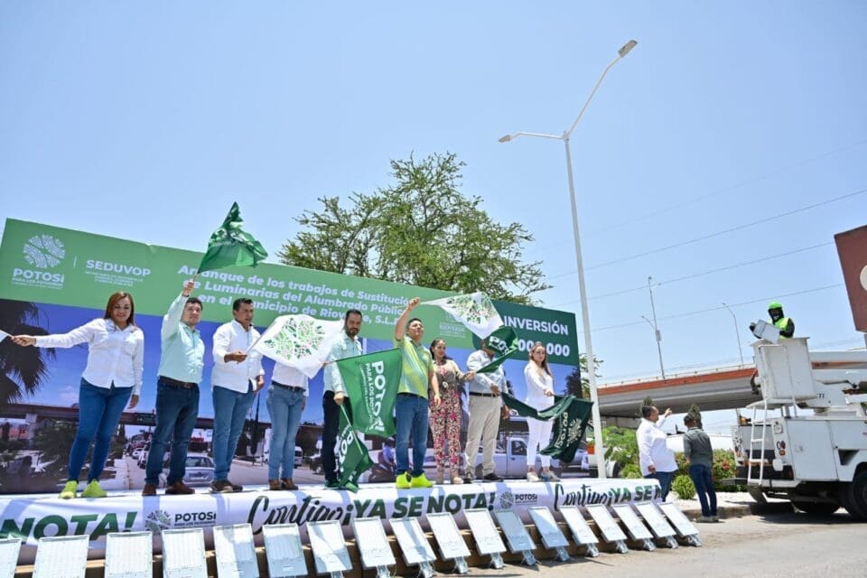 Acompañado del alcalde de Rioverde, Arnulfo Urbiola Román, con una inversión de 30 millones de pesos, Ricardo Gallardo también arrancó la sustitución de luminarias del alumbrado público, y anunció la ampliación hacia las comunidades cercanas de este programa, con lo que acabarán viejas deficiencias, con un alto beneficio social que mejorará la calidad de vida y la percepción de seguridad, y que convertirá a este municipio en uno de los pocos en tener el cien por ciento de iluminación moderna de Led en el país.