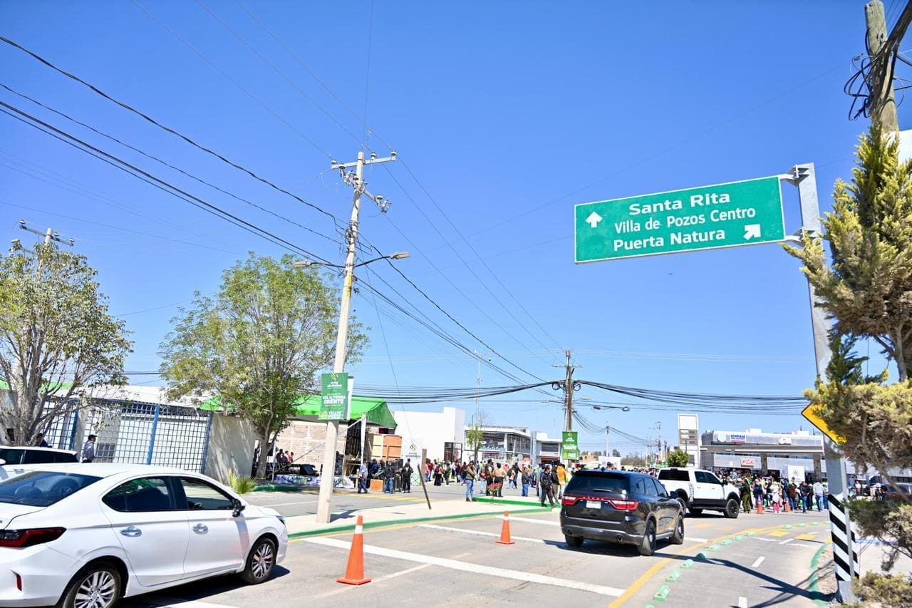 Ante representantes de cámaras empresariales y habitantes de Villa de Pozos, Ricardo Gallardo aseguró que esta nueva vialidad, la cual contó con una inversión de 60 millones pesos, es parte de toda una infraestructura integral que su administración construye en la zona metropolitana de San Luis Potosí, aligerando el tráfico que se crea en la Carretera 57 para dar un mayor flujo vial, beneficiando a más de 98,700 usuarios entre transportistas, proveedores, prestadores de servicios y visitantes de otros municipios y estados.