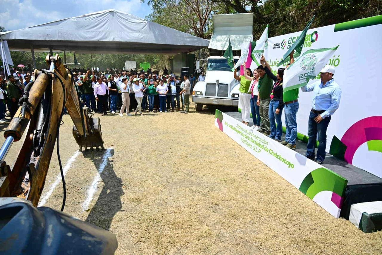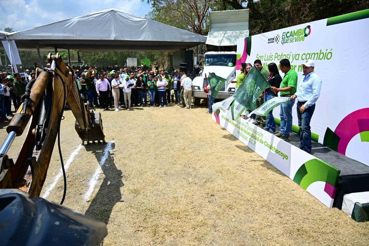 De igual forma, el Gobernador de San Luis Potosí arrancó los trabajos de construcción de una unidad deportiva en la localidad de Chalchocoyo, proyecto que impulsará el talento local y recuperará un espacio para la sana convivencia familiar y el bienestar social, a la vez que se promueven entornos seguros, funcionales y accesibles para todos los sectores de la población, fomentando la actividad física entre niñas, niños y jóvenes y contribuyendo a la paz y el orden en el municipio.