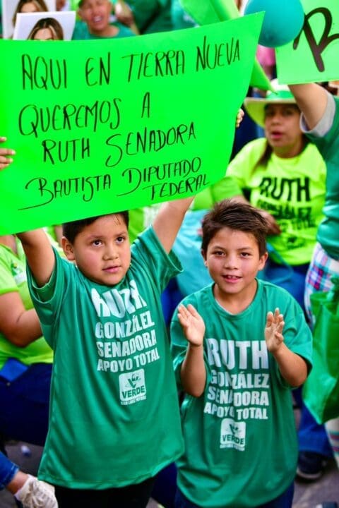 Acompañada por su compañero de fórmula al Senado de la República, Gilberto Hernández Villafuerte, y Oscar Bautista Villegas, candidato al tercer Distrito federal, Ruth González invitó a la población para que el próximo 2 de junio voten por las y los candidatos del Partido Verde a fin de garantizar que continúe la transformación, los programas sociales y los proyectos productivos y de infraestructura.