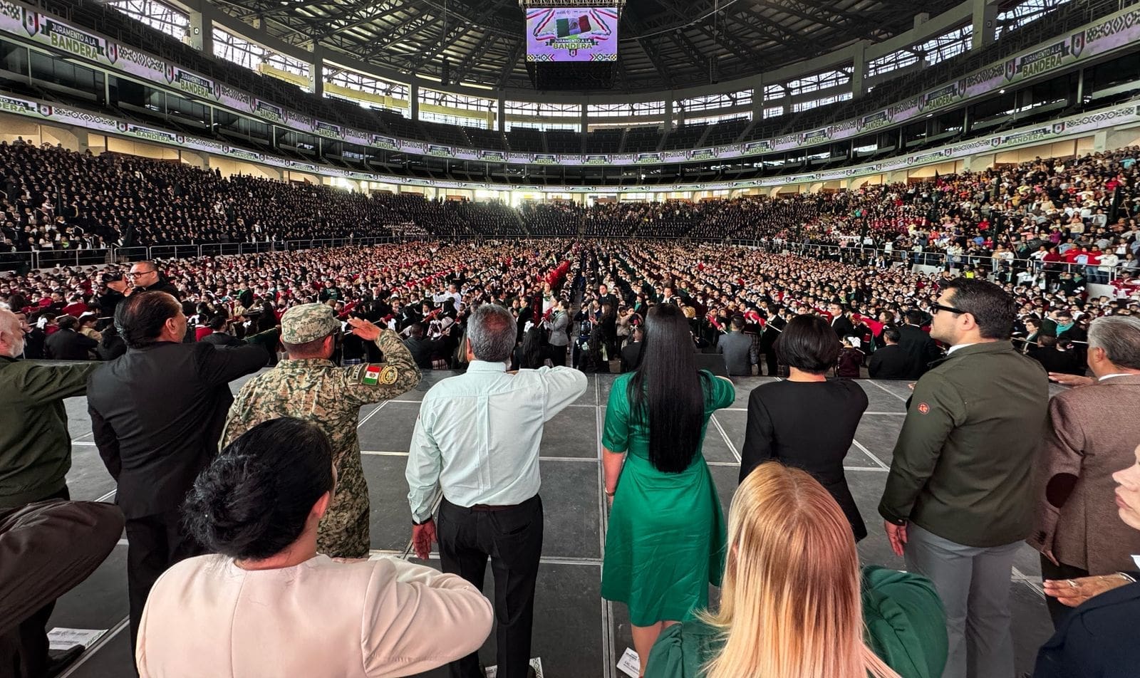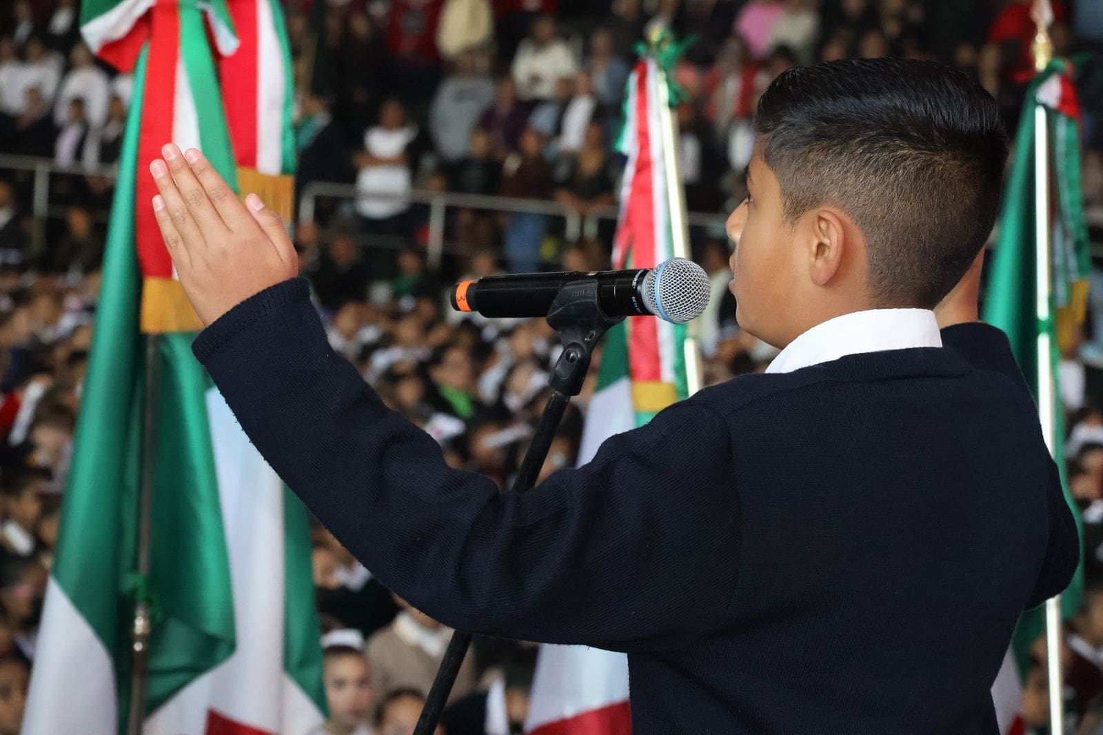 En el marco del fortalecimiento educativo que encabeza el Gobernador Ricardo Gallardo Cardona, el Sistema Educativo Estatal Regular (SEER) celebró la XXIV Ceremonia de Juramento a la Bandera con la participación de 4 mil 524 estudiantes de tercer grado de primaria de la capital y zonas conurbadas, en la Arena Potosí.