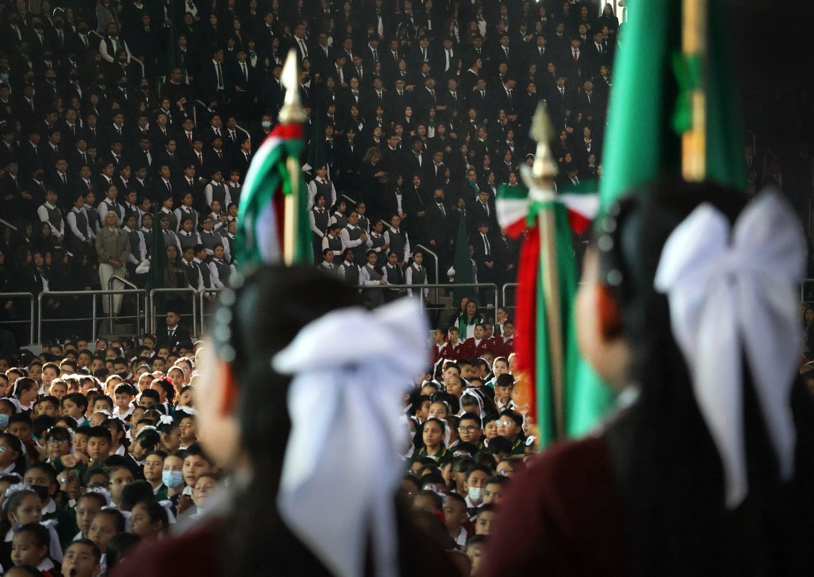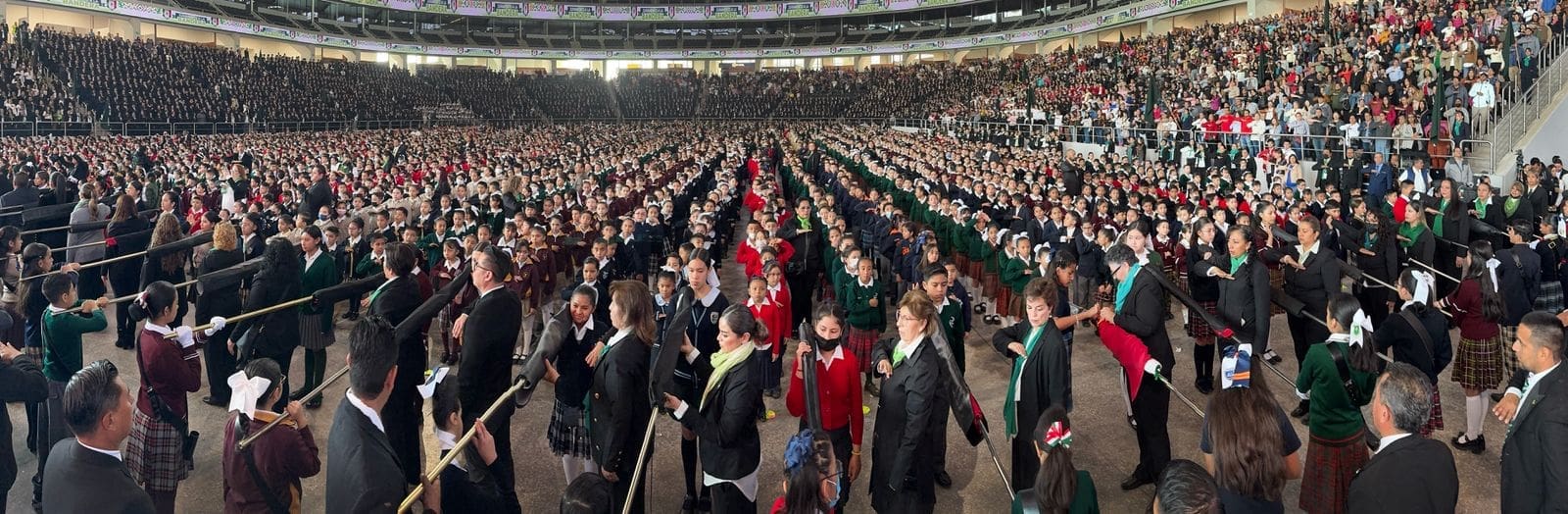 Participaron 128 planteles oficiales y particulares, con la asistencia de alrededor de 10 mil personas entre estudiantes, docentes y familias, además de la Orquesta Sinfónica del Gobierno del Estado. La coordinación de la Guardia Civil Estatal (GCE) y la Coordinación Estatal de Protección Civil (CEPC) garantizó el bienestar de los asistentes en una jornada que respalda el cambio que se vive y se siente, reforzando la educación cívica.