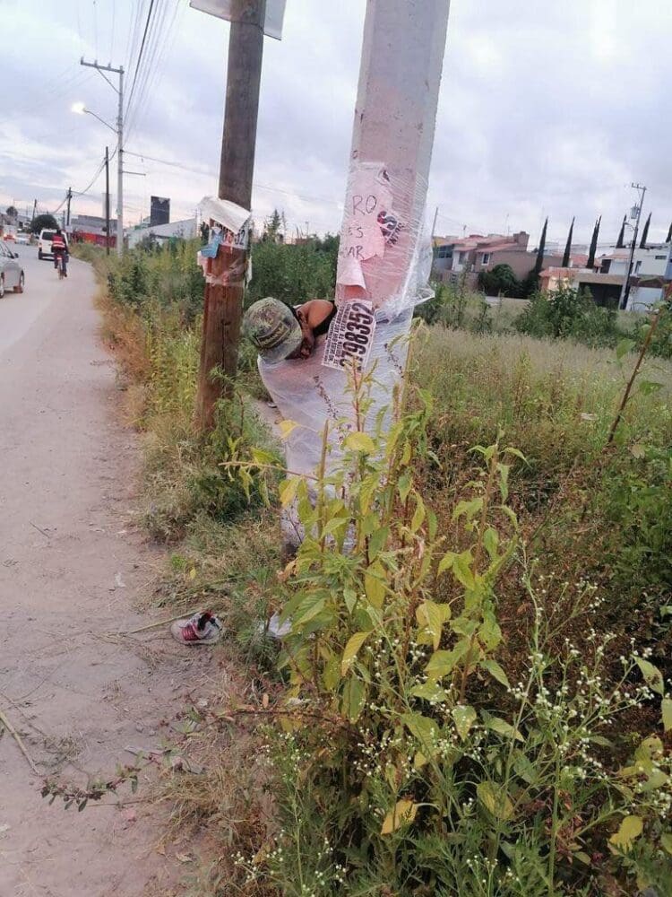 El hombre acusado de andar robando en esta zona, fue amarrado a un poste, emplayado con plástico y golpeado, pero las heridas fueron mortales que le produjeron la muerte quedando amarrado al poste.