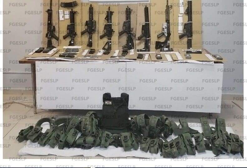 Como se dio a conocer, hace algunas horas, agentes de Investigación de la Fiscalía General del Estado, lograron el aseguramiento de 8 armas de fuego largas, 22 cargadores, 584 cartuchos, 8 fornituras y 1 un chaleco táctico, tras un cateo domiciliario.