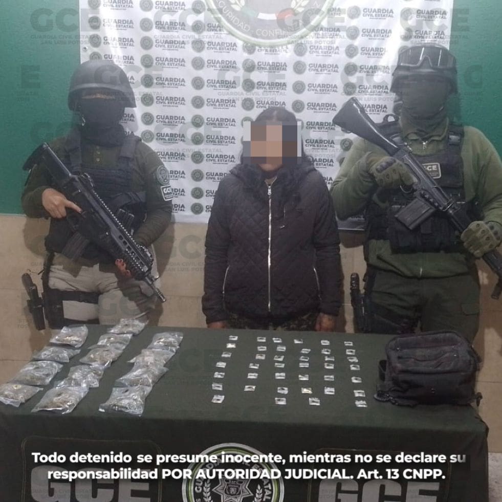 Mientras que, en la comunidad de La Esperanza, perteneciente a Villa de Zaragoza, fue capturada Rubí «N» de 26 años de edad, luego de ser detectada con 40 dosis de la droga sintética «cristal» y con 13 dosis de marihuana.