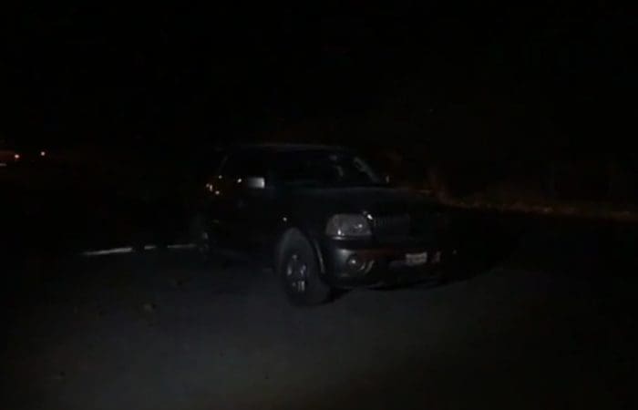 La camioneta fue reportaba en estado de abandono y presentaba diversos orificios del lado del conductor, hechos por las balas percutidas, además había manchas de sangre en el suelo.