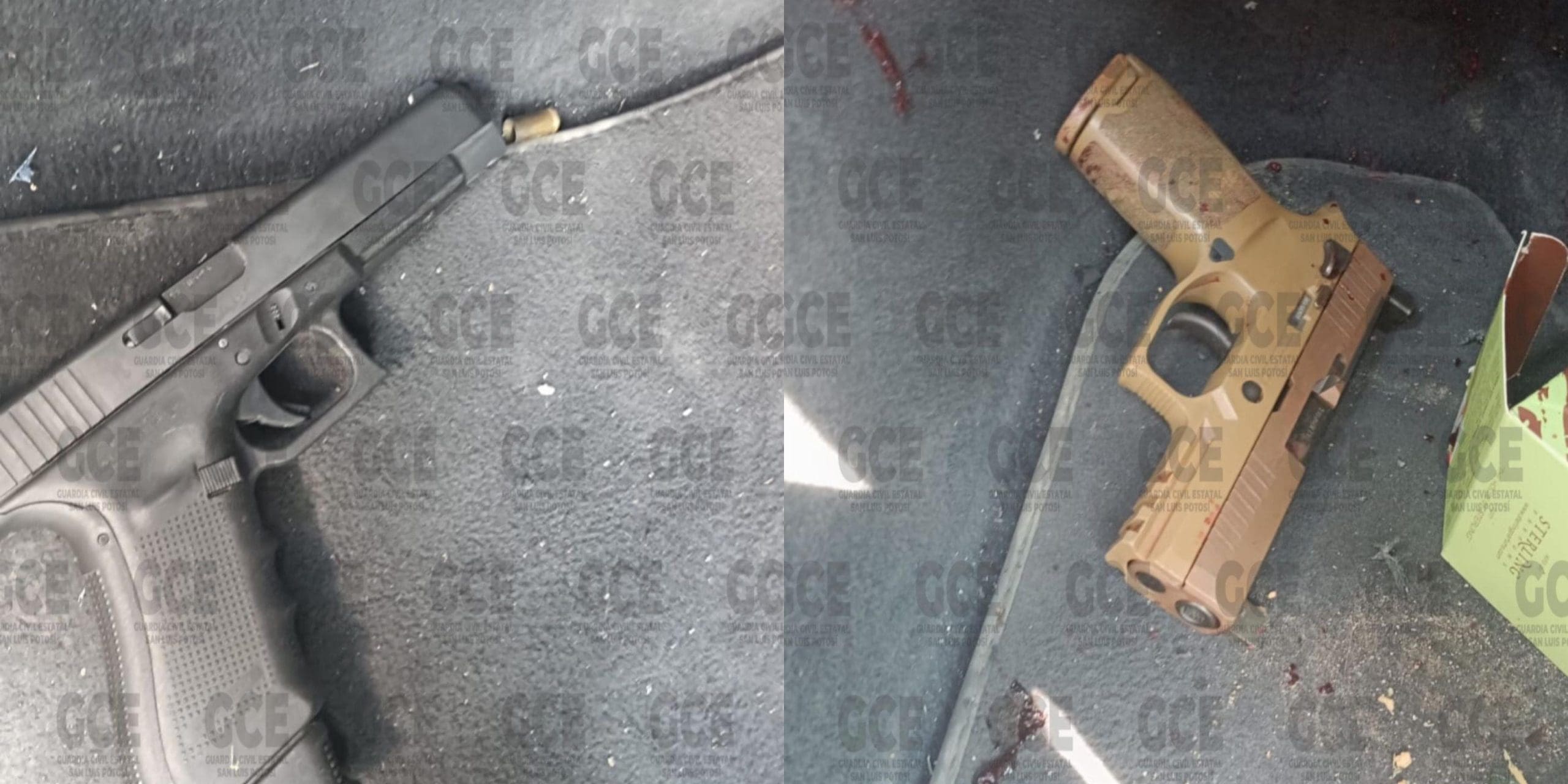 Kilómetros más adelante, el vehículo se detuvo y el conductor corre entre el monte dándose a la fuga; en el interior del vehículo quedaron dos occiso además de localizar dos armas de fuego cortas y un arma larga.