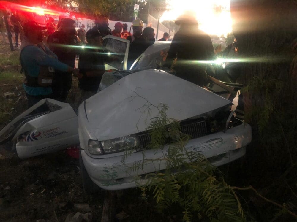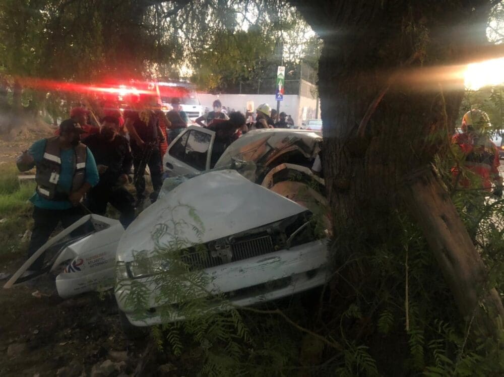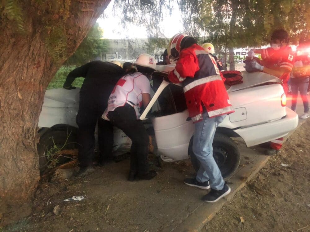 Un joven conductor de un automóvil Tsuru, salió milagrosamente con vida, después de haberse impactado contra un árbol y quedar prensado en el interior de la unidad, en avenida Libertad de la colonia El Morro.
