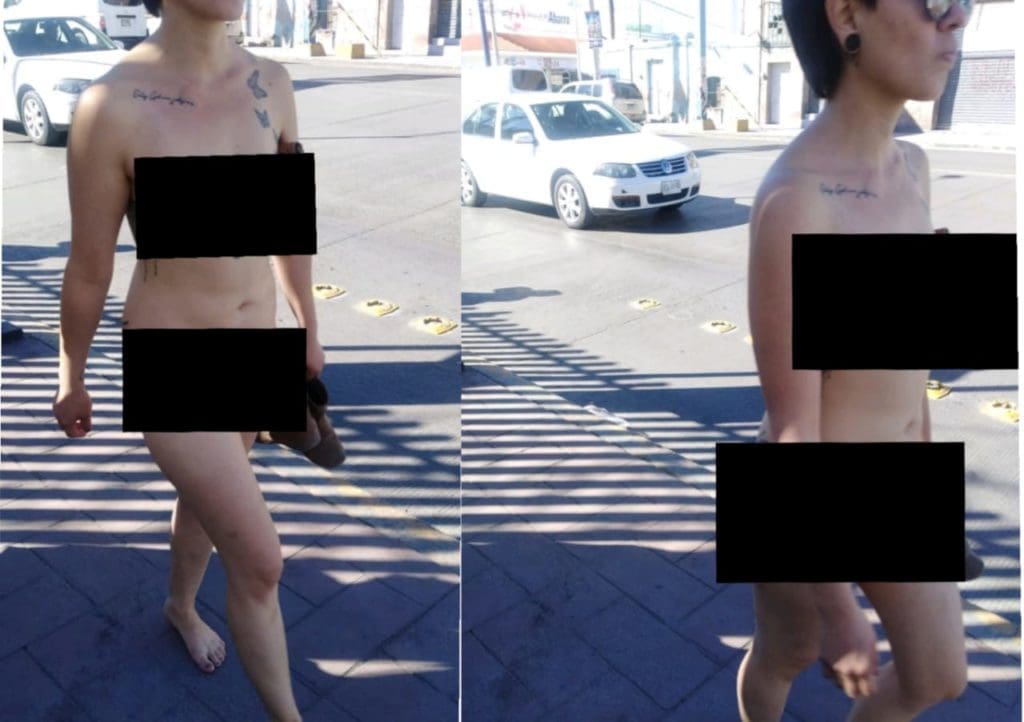 Una mujer fue remitida a barandilla, luego de que fuera captada en la vía pública completamente desnuda; agentes municipales de la Capital la auxiliaron y la trasladaron al área de trabajo social.