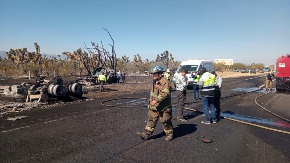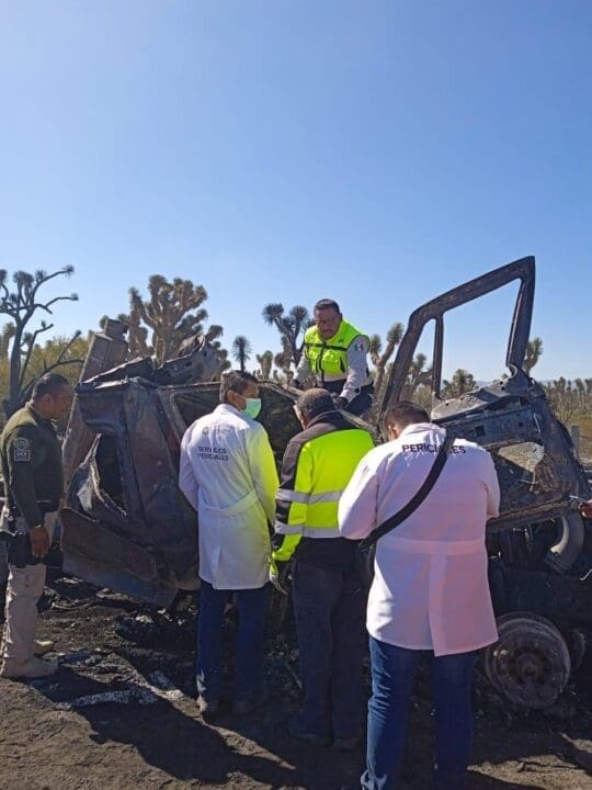 Detalló que al lugar llegaron bomberos de Matehuala quienes lograron apagar el fuego de la unidad, mientras que elementos de la Coordinación Estatal de Protección Civil apoyaron en el rescate del cuerpo del chofer que falleció calcinado en el lugar.