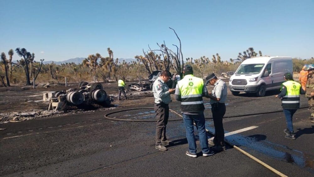 La Coordinación Estatal de Protección Civil (CEPC), Bomberos de Matehuala, Guardia Nacional y Guardia Civil Estatal (GCE), atendieron la volcadura de una pipa en el kilómetro 137 de la carretera a Matehuala.
