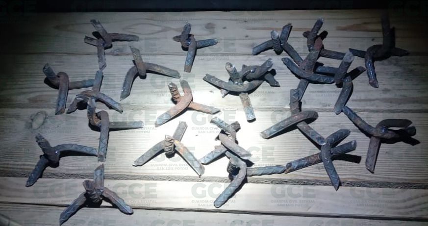 La implementación de estrategias por la seguridad y la paz de todas y todos los potosinos, en el marco del Plan Integral de Seguridad, en la región Huasteca, agentes de la Guardia Civil Estatal (GCE) aseguraron 30 artefactos “poncha llantas” en distintos ejes carreteros, los cuales fueron detectados en recorridos de vigilancia; sin embargo, dos patrullas de la corporación resultaron dañadas.