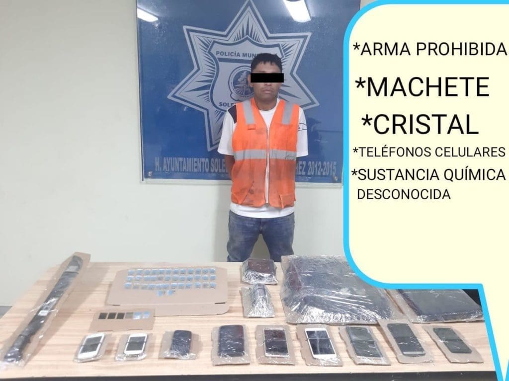 Elementos de la Policía Municipal de Soledad, realizaron una importante detención de un delincuente que, al momento de su captura, se le encontró droga desconocida, armas prohibidas, celulares y droga «cristal».