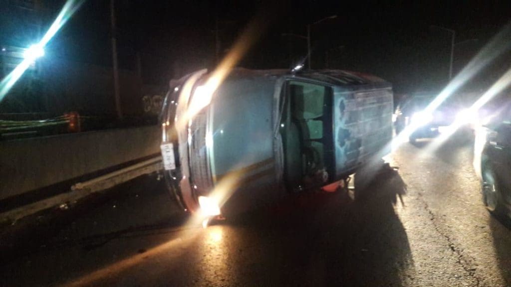 En Periférico Oriente, a la altura del Puente Rivera, un conductor perdió el control de su vehículo, al manejar a exceso de velocidad, y volcó resultando herido.