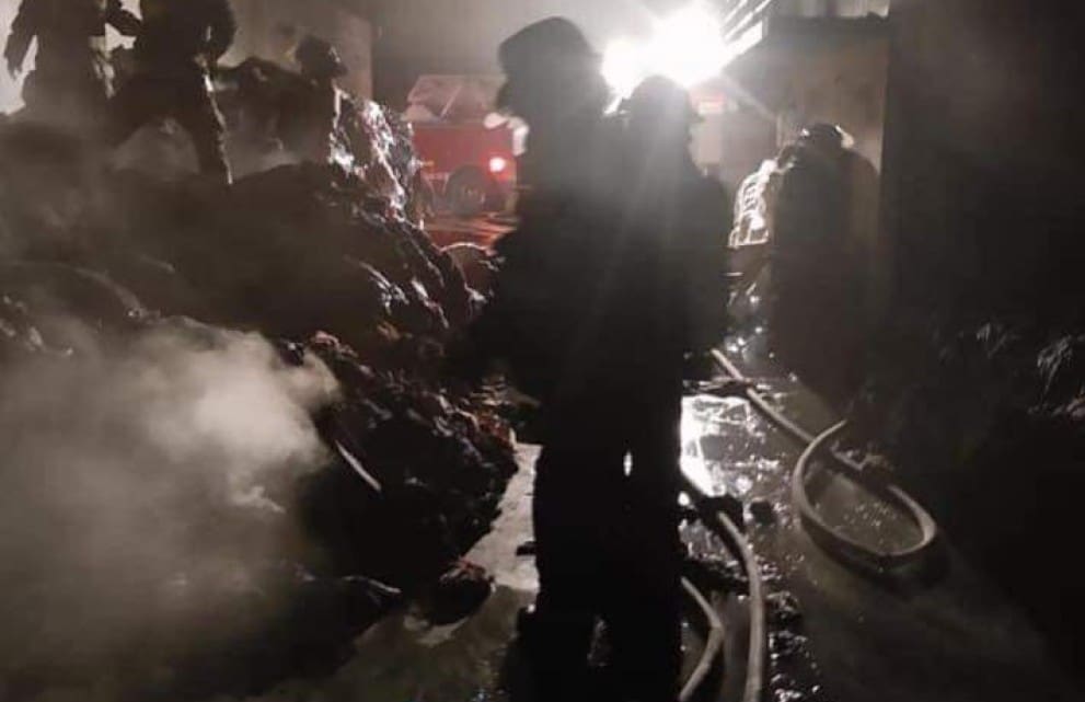 En la madrugada de este domingo, Bomberos de la zona metropolitana de SLP, atendieron un fuerte incendio registrado en una bodega que almacenaba pacas de ropa, ubicada en la colonia Rivas Guillen.