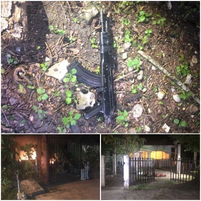 En esta vivienda, se encontraron varias armas de fuego, una de ellas larga y decenas de casquillos percutidos. Metros adelantes, otra casa fue baleada y ahí, se localizaron los cuerpos sin vida de 3 personas, una mujer y dos hombres. Uno de los occisos fue identificado como Ángel O. alias «La Cotinga» y quien era propietario de la casa incendiada, mientras que las otras dos víctimas no han sido identificadas.