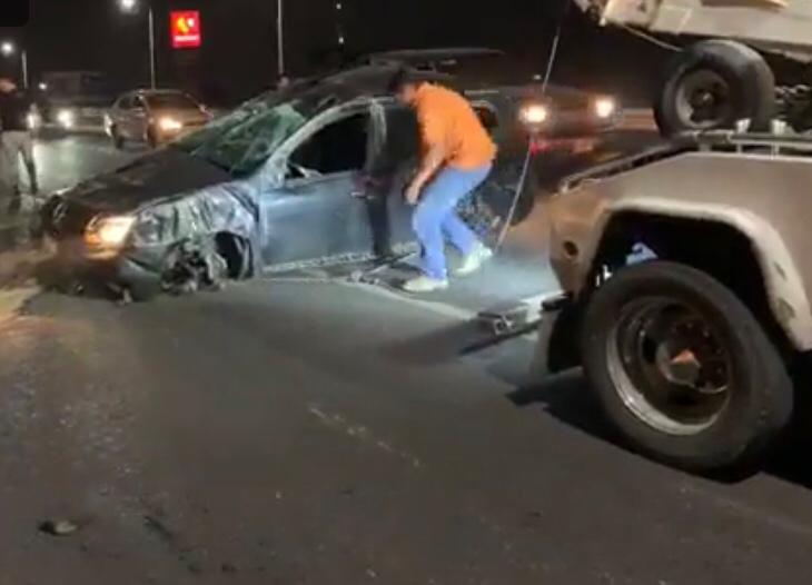 La madrugada de este viernes, el conductor de un automóvil color gris volcó al subir el puente de Av. José de Gálvez, en la carretera a México, frente a la Plaza Sendero, debido a la falta de precaución, lo que derivó en la pérdida del control de la unidad.
