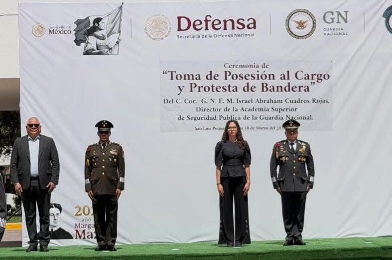 Siguiendo la instrucción del Gobernador Ricardo Gallardo Cardona de fortalecer sin límites la seguridad, la Secretaría General de Gobierno (SGG), a través de la Subsecretaría de Enlace Interinstitucional, refrenda el compromiso de trabajar de manera coordinada con las instituciones federales tras el relevo en la dirección de la Academia de la Guardia Nacional, ahora encabezada por Israel Abraham Cuadros Rojas, consolidando esfuerzos en materia de seguridad y justicia en San Luis Potosí.