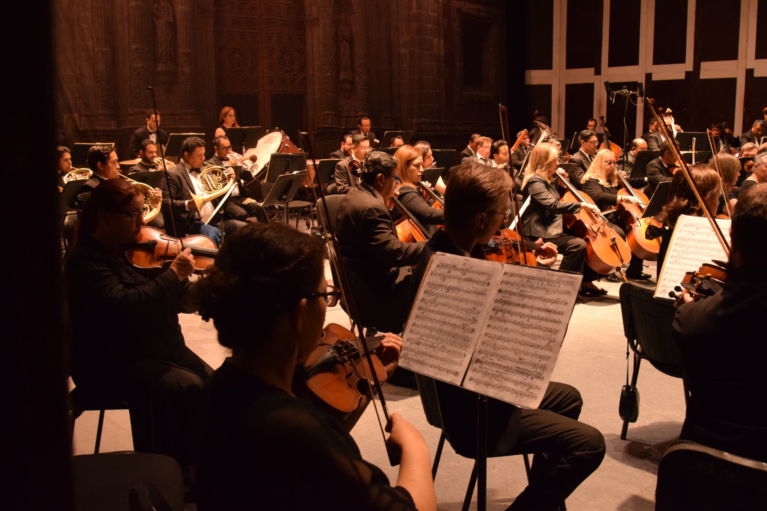 Después de unas palabras de reconocimiento para recordar a las y los músicos que pertenecieron a la Orquesta, los asistentes disfrutaron de la Sinfonía no.1 en fa menor de Dmitri Shostakovich y del concierto para piano y orquesta no. 2 en Do menor de Sergei Rachmaninov, este último con la participación del pianista Vladimir Petrov. Ambas interpretaciones fueron dirigidas por el director huésped, Eduardo García Barrios.