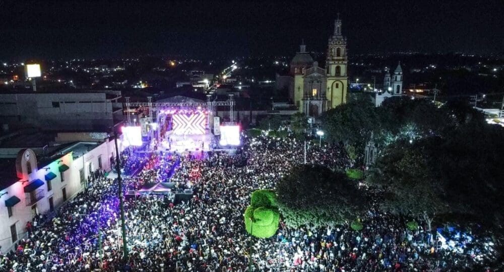 Por quinta noche consecutiva, la Feria Nacional de la Enchilada registró un lleno total de visitantes que se volcaron al jardín principal de Soledad para disfrutar de la presentación en el teatro del pueblo del grupo Los Yaguaru.